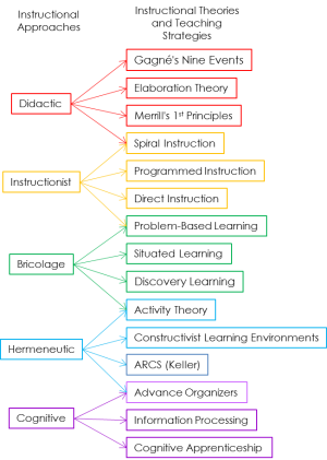 The Didactic group includes theories that provide a framework for instruction. They tend to be prescriptive in that they outline what needs to be done, often in what order, but they are not design models in that they don’t provide the process for actually creating the designs.